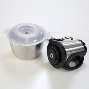 This meat grinder product boasts a fully steel shaft, a large 3L capacity, dual gear settings for adjustable coarseness, a double-layer four-blade cyclone-speed grinding mechanism ensuring a finer and more flavorful mix, a high-power motor head with strong torque, single-handed operation for safety and convenience, and easy cleaning.